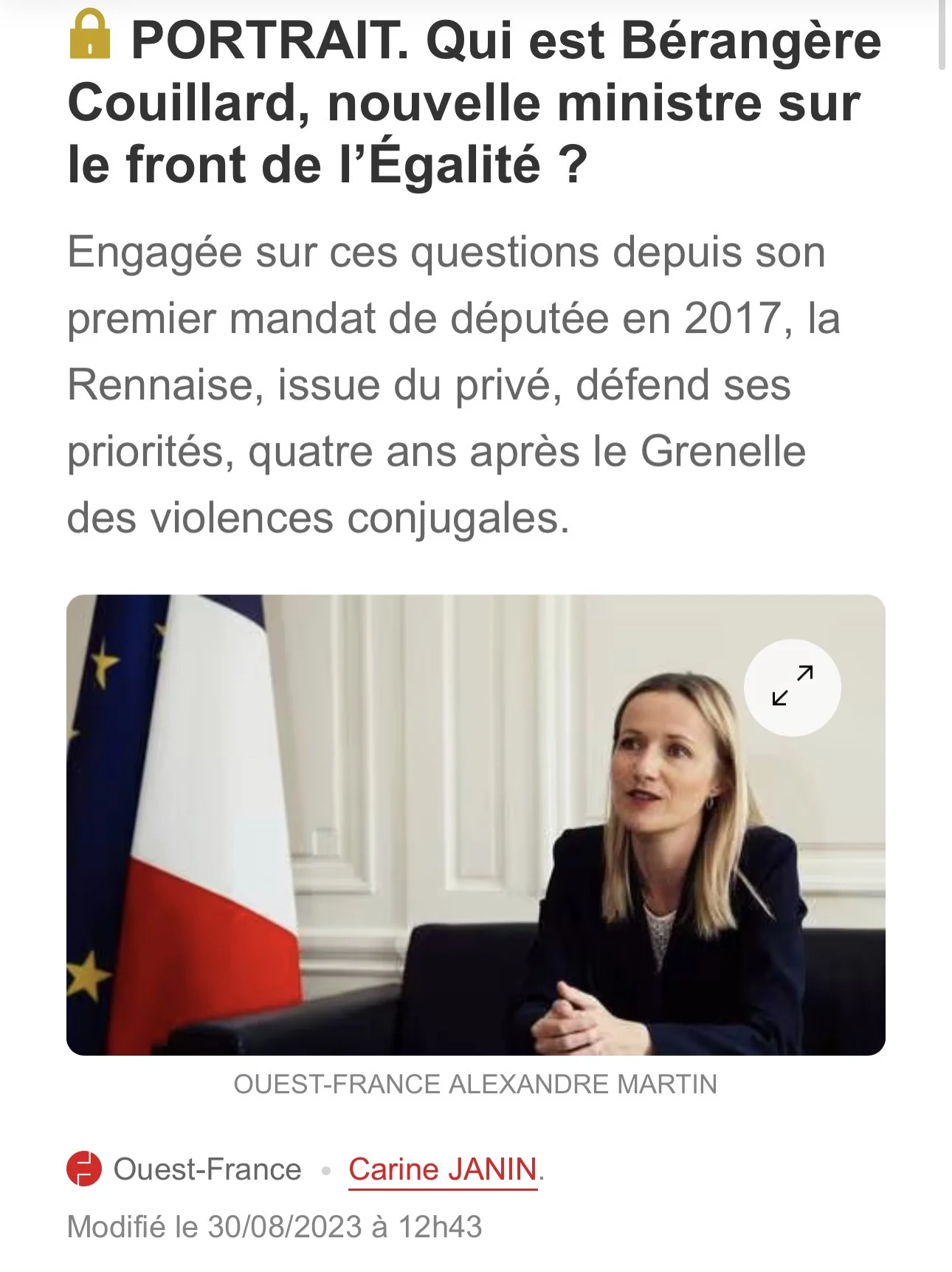 Bérangère Couillard Chargéé de l'égalité entre les femmes et les hommes.